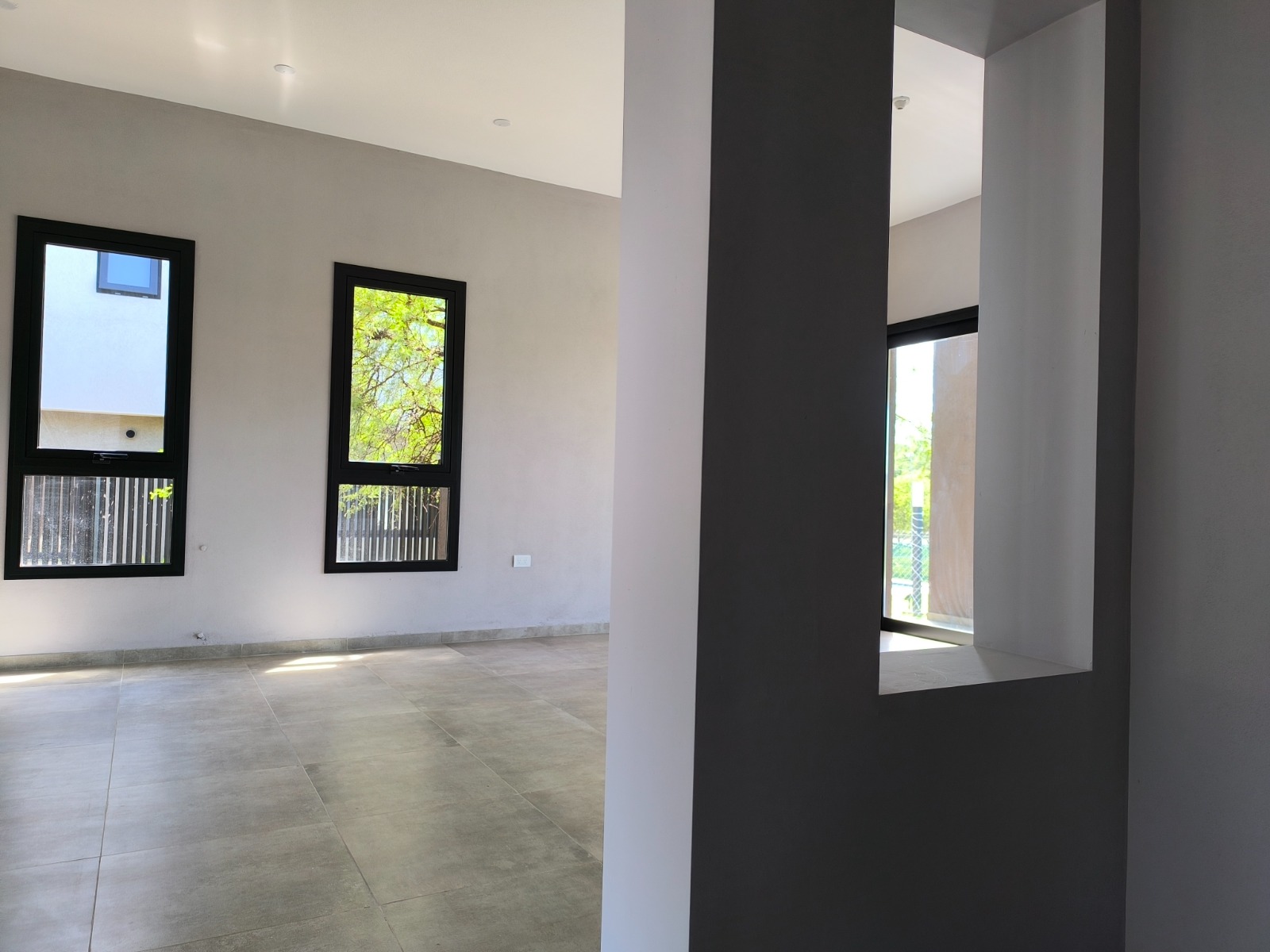 Al atravesar este pórtico, se configura un espacio cualificado entre la calle y la vivienda, accediendo a la puerta principal mediante un recorrido de transición que brinda una sensación de intimidad al ingresar. Un hall de recepción organiza y articula los ambientes sociales respecto de los privados.