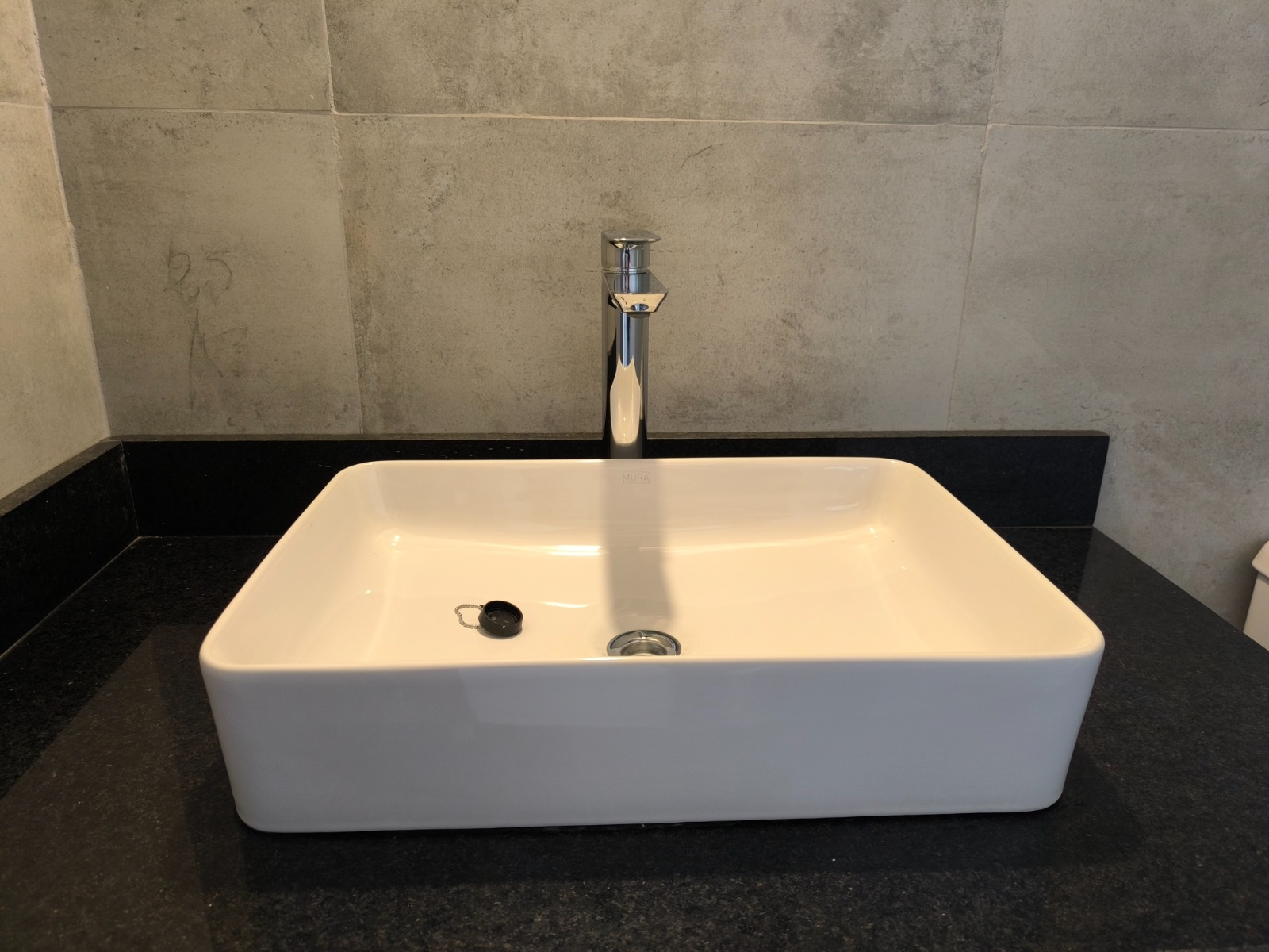 * Granito Negro Brasil en mesadas de baños