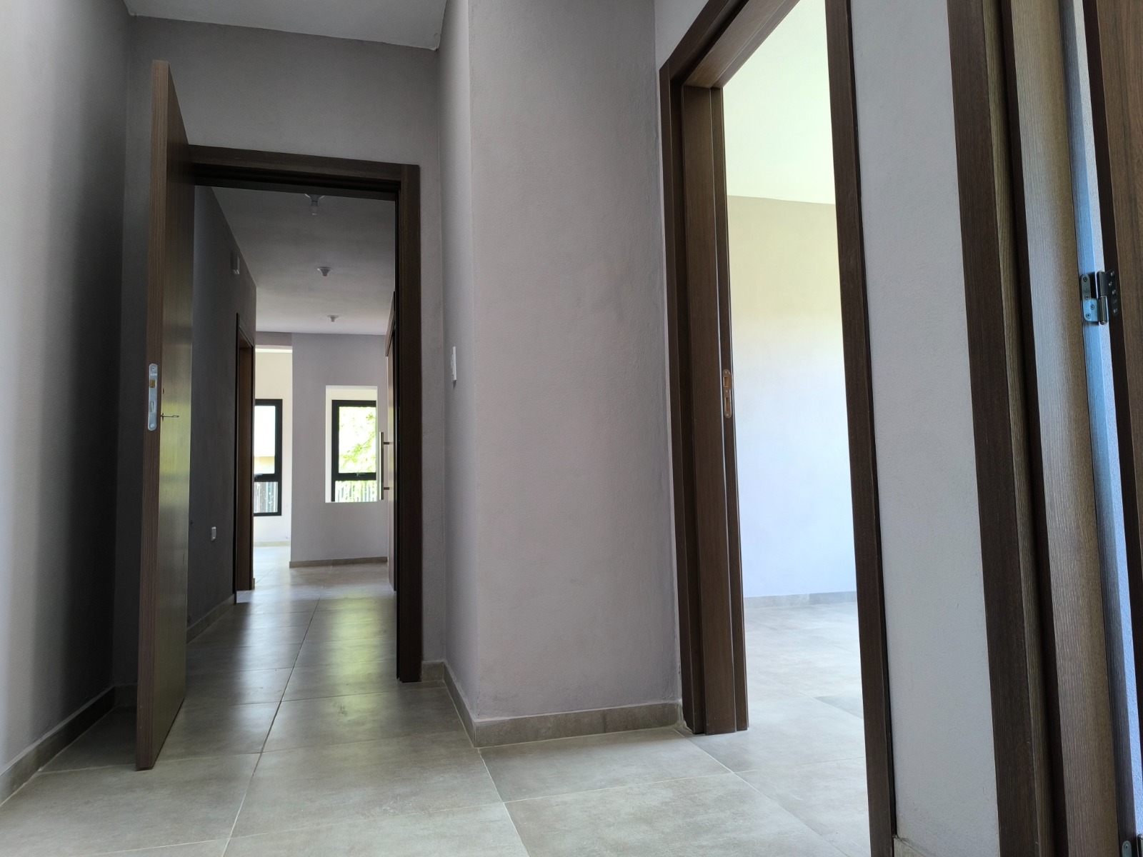 * Puertas interiores en terminación foliada con tapajuntas y burletes de goma.