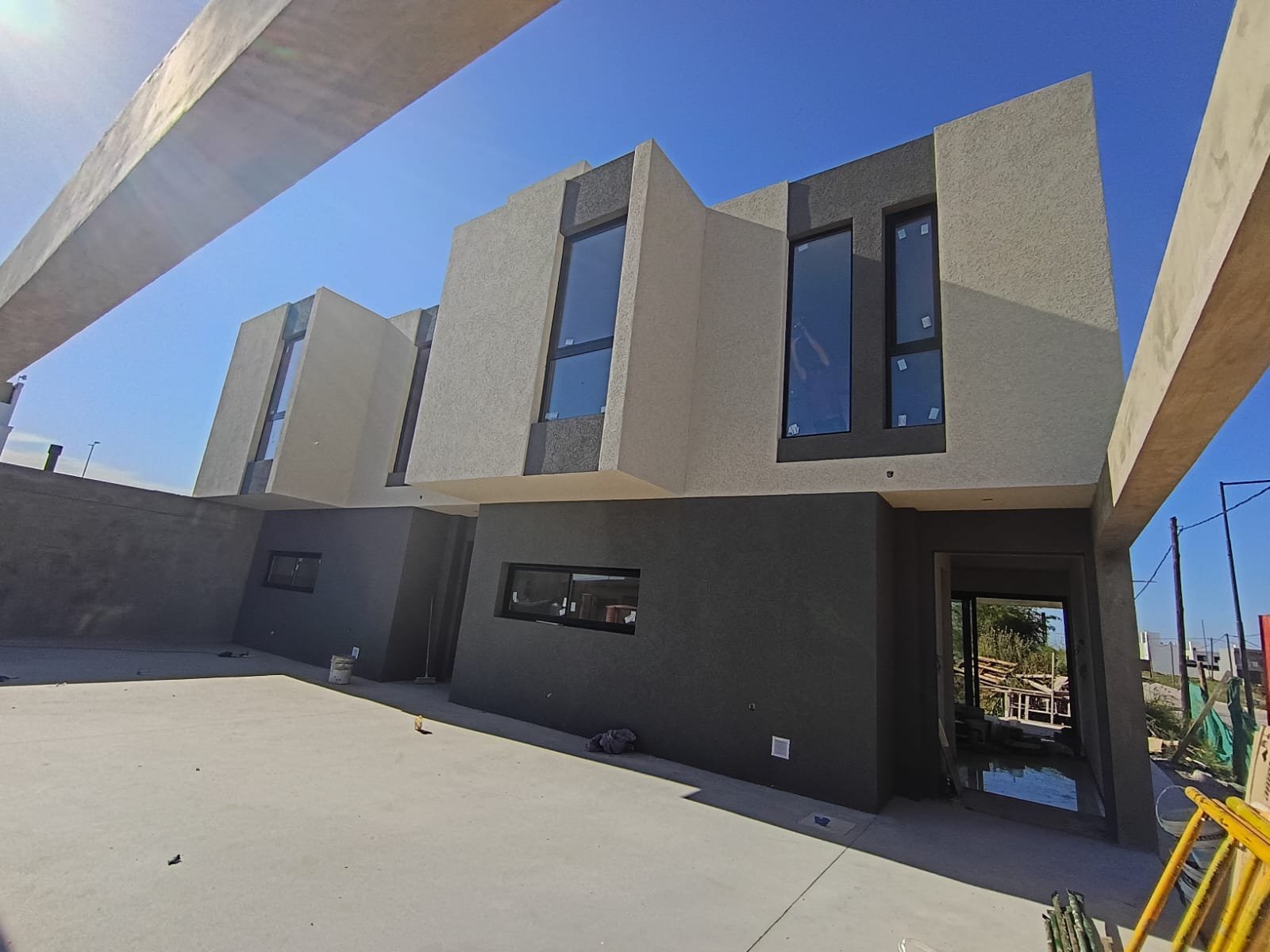 >Paredes exterior con revoque plástico texturado.