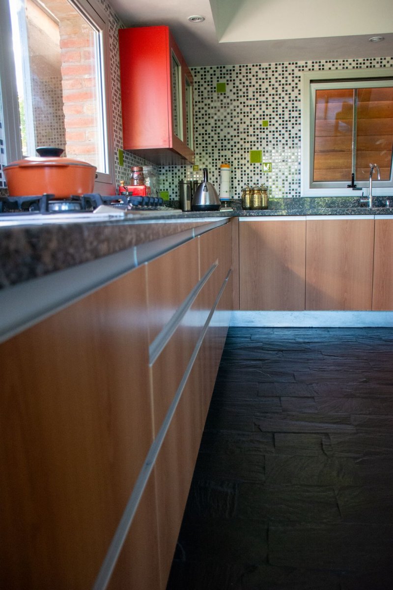 -Cocina: La cocina posee 9 m lineales de mesadas de granito, con pileta Johnson y anafe. El horno se encuentra empotrado en el mueble de cocina.