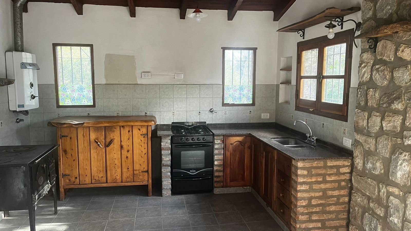 El inmueble cuenta con dos estufas rusas, hogar a leña y estufa económica. Conexión a gas en toda la casa (todavía no llega a la puerta pero la conexión está lista).